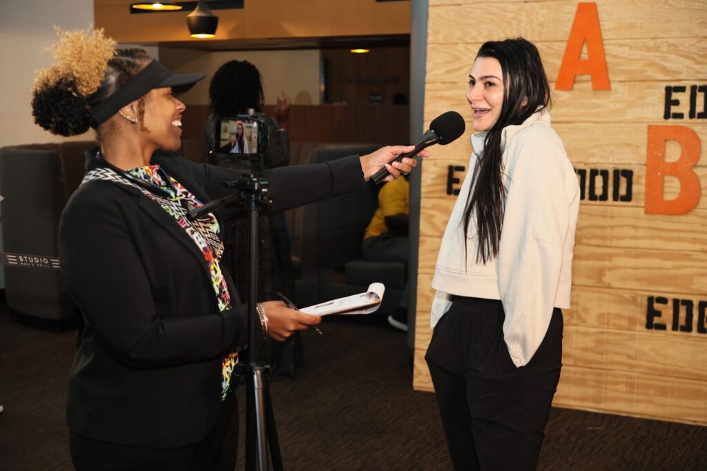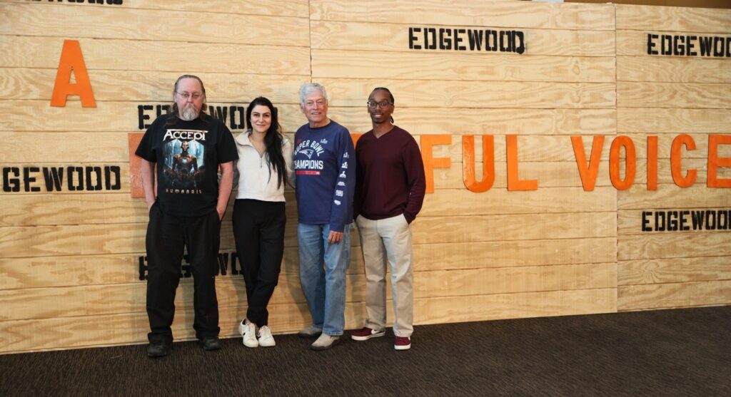 I arrived a bit late, but had plenty of time to see a room full. A beautiful crowd, overwhelmed by urban glamour and professional elegance. Of course I’m talking about the October 22nd 2025 film premiere for Gregory Smith’s presentation to A Beautiful Voice. As I began chatting with one of the attendees, a young lady approached our section. She must have recognized me from my YouTube channel, I can dream right. She introduced herself as the Chapter leader for the Dallas division for the NSA (National Stuttering Association) Ashley Todd. Ashley told us that films like A Beautiful Voice are super important because most people have no idea about stuttering and more importantly how to respond to someone who has a stutter. She said her personal issue is when people tell her to “slow down”, she says stuttering has nothing to do with the speed that one is talking, yet, it’s a neurological glitch that causes the stutter. We all agreed that education is what everyone can use.